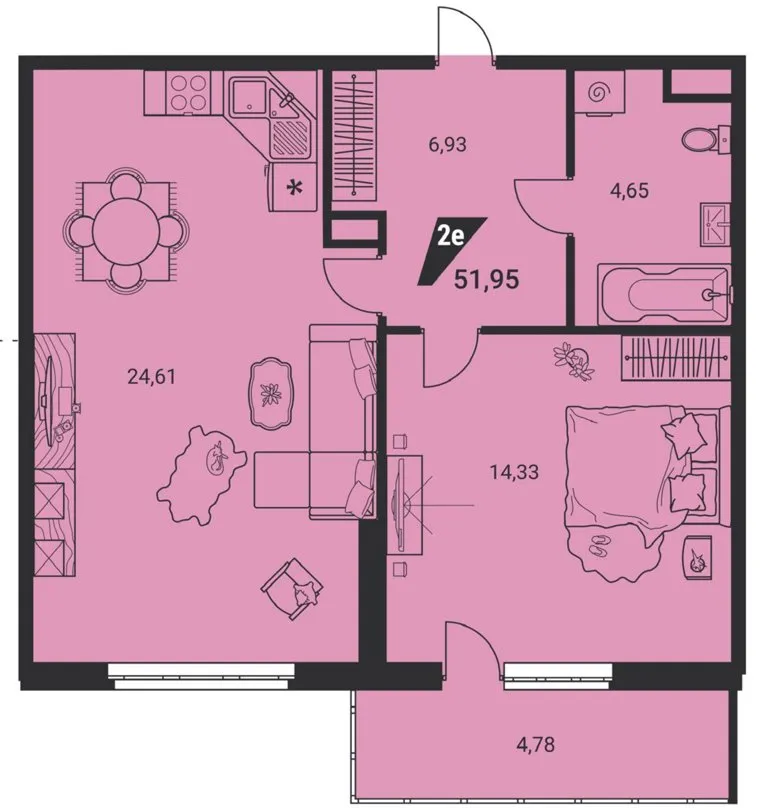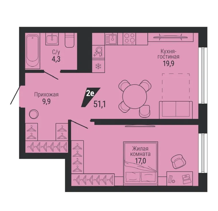 - двухкомнатная (44-51 квадратных метра): от 7,2 млн рублей;