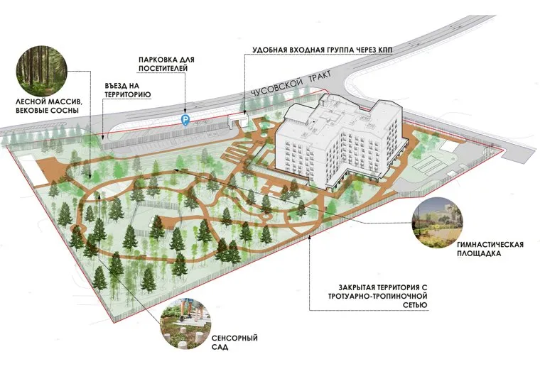 «Синара-Долголетие» расположен всего в 20 минутах езды от центра Екатеринбурга в тихой лесопарковой зоне площадью в три гектара. На территории центра можно гулять и заниматься физкультурой на свежем воздухе. Здесь же есть тренажеры для восстановления моторики и баланса, а также сенсорная дорожка, благодаря которой резиденты внедрят в практику прогулки босиком в теплое время года.
