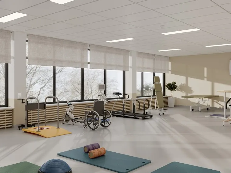 Залы для комплексного восстановления оснащены современными тренажерами и инвентарем. Планируется проведение индивидуальных и групповых занятий, направленных на возобновление двигательной активности, укрепление мышц, улучшение координации и работы сердечно-сосудистой системы.