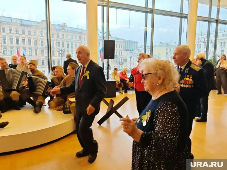 От танцев многие не могли устоять. Две женщины, едва отдышавшись, рассказали журналисту URA.RU, что в блокаду были детьми. Отцы погибли на фронте. Матери отказались от эвакуации — не хотели покидать любимый Ленинград. Всю войну работали и, как могли, поддерживали детей.