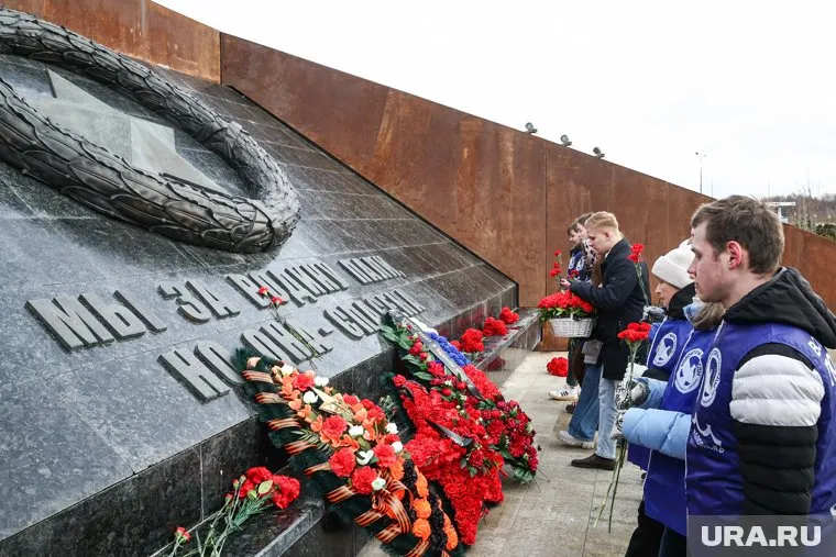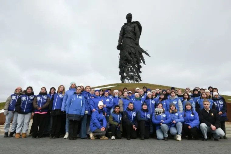 Десант добровольцев возложил цветы к подножию 25-метрового памятника. Для памятной фотографии и видео провели флэш-моб — ребята выстроились в форме пятиконечной звезды.