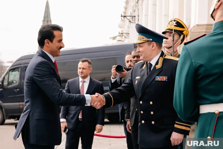 Аль Тани у входа в Большой Кремлевский дворец приветствовал лично комендант Московского Кремля