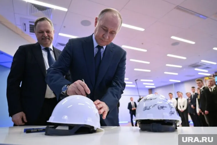 Владимир Путин оставил Бауманке на память о встрече свой автограф на рабочей каске