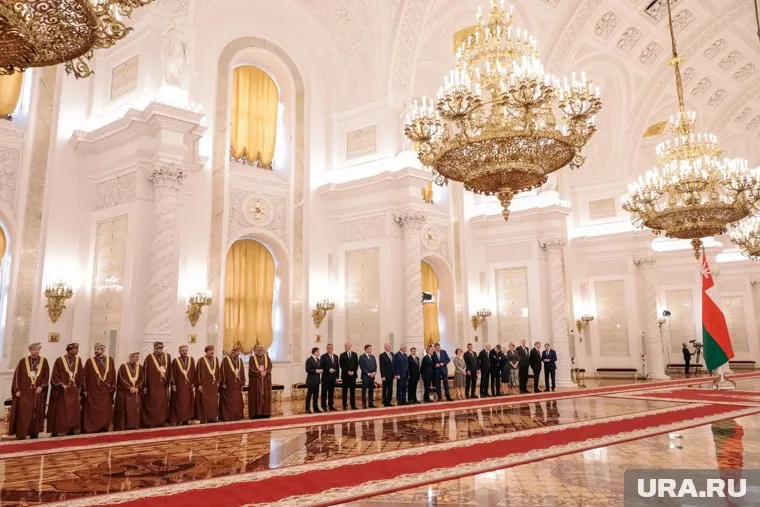 Путин принимал высокого гостя в Георгиевском зале Кремля. В середине зала — огромные флаги России и Омана, к которым вела красная дорожка. По ней султан Хейсам Бен Тарек Аль Саид прошел навстречу российскому лидеру. Путин и Аль Саид пожали руки, президентский оркестр заиграл гимны — сначала Омана, затем — России.