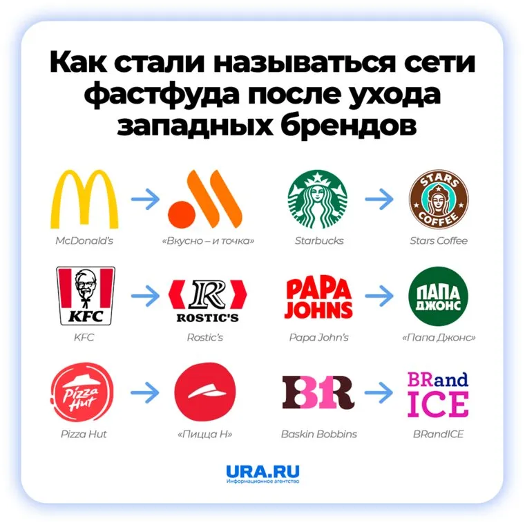 Эксперт добавил, что фастфуд — единственный сегмент в сфере общественного питания, который столкнулся с уходом западных компаний. В других направлениях ресторанного бизнеса иностранных сетей почти не было. Исключение — американский бренд TGI Fridays. Но это франшиза, которой управляет российский оператор, и она продолжает работать под тем же названием.