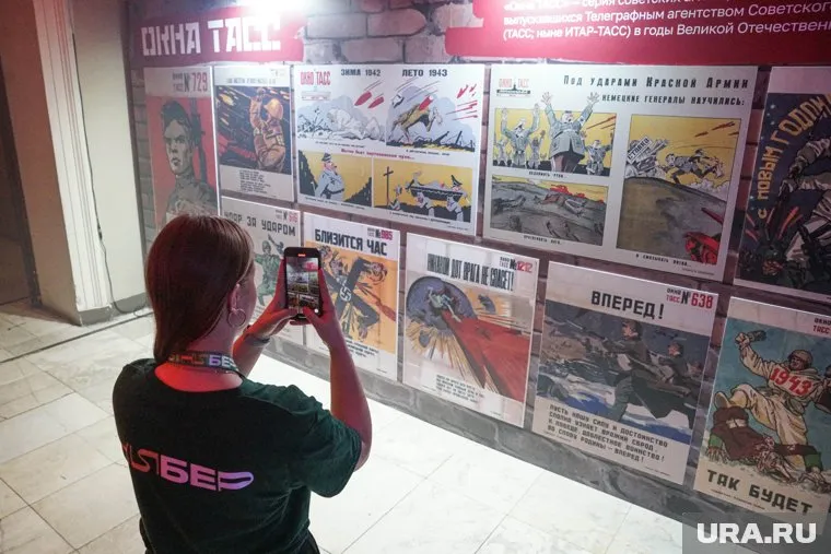 Гости реконструкции могут увидеть агитационные плакаты знаменитой серии «Окна ТАСС» с призывами к защите Родины. Их авторы реагировали на те или иные события, используя, в том числе сатиру и юмор. Всего за время войны редакция ТАСС отпечатала более 1,2 тысячи плакатов тиражом 842,5 тысячи экземпляров.