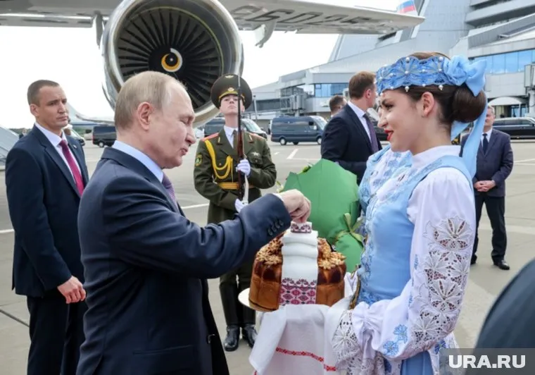 В минском аэропорту президента РФ Владимира Путина встречали с хлебом и солью