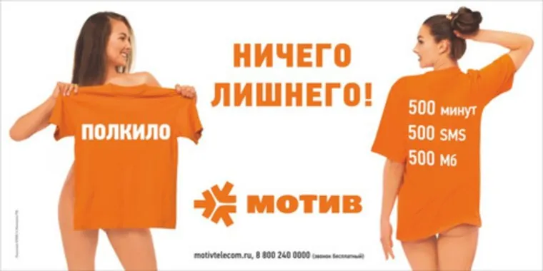 Единственный уральский оператор сотовой связи «Мотив» в очередной раз заставил обратить на себя внимание, запустив рекламную кампанию нового продукта. Симпатичная, местами оголенная девушка предлагает пользователям получить «полкило мобильных удовольствий». Не исключено, что кроме простых уральцев к билбордам проявят интерес сотрудники антимонопольной службы и проведут проверку на предмет использования непристойных образов. Стоит отметить, что реклама «Мотива» всегда отличалась яркими провокационными образами.