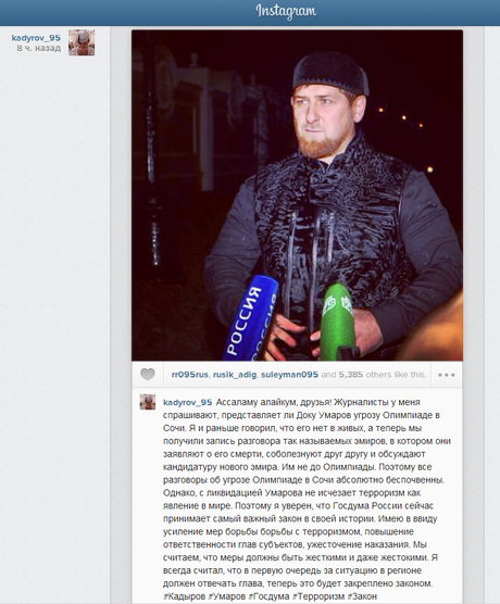 За Олимпиаду не бойтесь, повторения Волгограда не будет. «Все террористы оплакивают Доку Умарова». Рамзан Кадыров сделал заявление