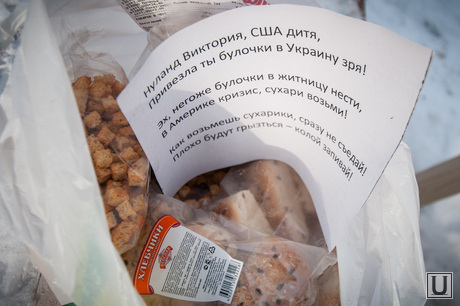 Члены екатеринбургского национально-освободительного движения позаботились о заместителе госсекретаря США Виктории Нуланд. Сегодня возле здания генконсульства США состоялась уже третья по счету публичная акция. На этот раз организаторы пикета собрали для высокопоставленной чиновницы посылку с сухарями.