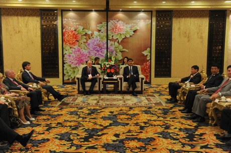 В ходе встречи с главой правительства СУАР Нур Бакри Дубровский сообщил, что предложил президенту России принять участие в торжественном открытии первой очереди на саммите ШОС в июле 2015 года в Уфе. «Это может быть прямое включение из ТЛК, когда по нажатию кнопки в Уфе первая очередь будет запущена. Считаю, будет символичным одновременно запустить логистический объект на Вашей территории с участием руководителя КНР», — пояснил Дубровский.