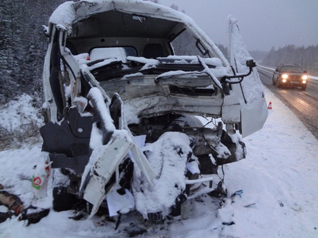 Единственная радость от внезапно начавшегося снегопада сегодня связана с тем, что на дорогах в некоторых районах довольно свободно. Остальные события представляют собой череду трагедий. Так, на трассе Пермь — Екатеринбург произошло ДТП, в результате которого погибли два человека. Как уточняет свердловское УГИБДД, 13 октября в дежурную часть отдела МВД России по Первоуральску поступило сообщение от диспетчера службы спасения о том, что в 05.40 на 308-ом км трассы Пермь — Екатеринбург произошло лобовое столкновение малогабаритного грузовика «Ниссан-Атлас» и фуры МАЗ.