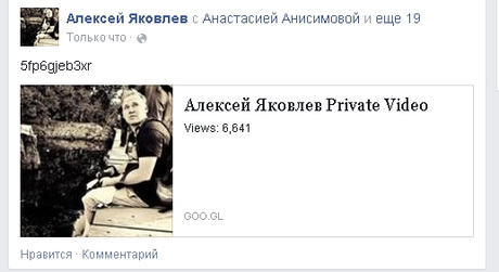 Если вы откроете ссылку, то распространение вируса продолжится уже через ваших друзей. Затем на вашей стене появится аватарка друга с обозначением имени и фамилии пользователя, а также указанием «Private Video» (частное видео) и якобы тысячи просмотров.
