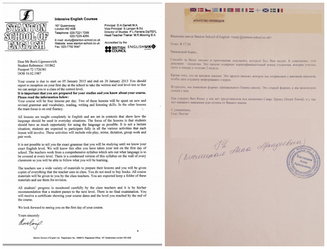 Борис начал подозревать, что директор турфирмы его дурит. Он позвонил в лондонскую школу, где ему сказали, что его нет в списках на обучение. Молодой человек выслал подтверждение, которое присылала ему Елена. «Мне ответили, что документ является подделкой. Он был оформлен на девушку, которая училась у них год назад. С тех пор форма изменилась, и вообще этот документ не является входным билетом в школу, это лишь дополнение к основному», — вспоминает обманутый клиент.