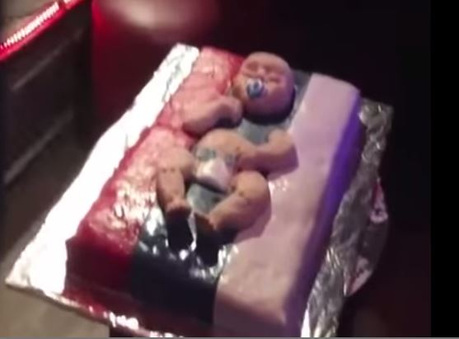 Шокирующее видео распространяется в социальных сетях: на кадрах запечатлено, как во время вечеринки толпа режет торт, на котором заботливо уложена очень натурально выглядящая фигура младенца. Сам торт выполнен в виде российского флага. Как сообщается в описании ролика, видео было снято в киевском клубе «BarHot», где 28 декабря проходило вручение премии «Ватник года».