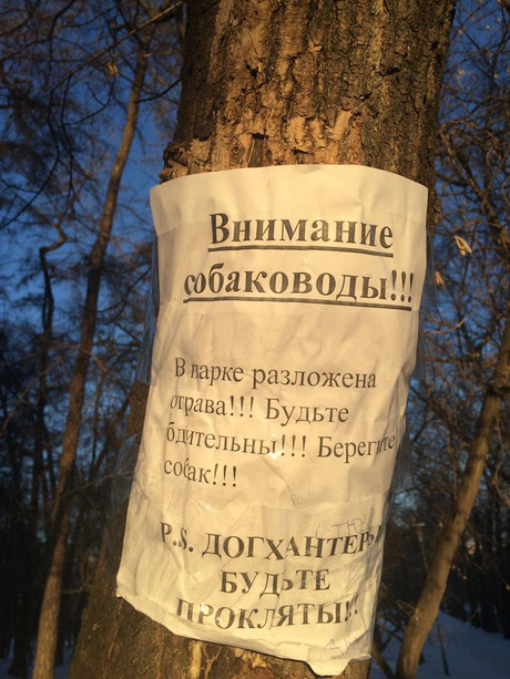 Владельцам собак следует быть предельно внимательными. «У догхантеров проходит нездоровый флешмоб — массово травят собак изониазидом», — предупреждают пользователи соцсетей. А 20 января 2015 догхантеры объявили днем зачистки от собак.