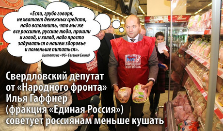 Напомним, в интервью журналистам по итогам проверки супермаркета «Карусель» в рамках партийного проекта «Единой России» «Народный контроль» Гаффнер, отвечая на вопрос, как преодолеть кризис, предложил вспомнить времена «голода и холода» и «меньше есть». Это вызвало бурное обсуждение как в соцсетях, так и среди коллег депутата по Заксобранию. Основная претензия в том, что этой фразой депутат снимает ответственность с политиков за сделанные ошибки в экономике и предлагает простым гражданам взять на себя тяготы кризисного времени.
