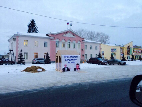 Жители Арамиля устроили сегодня акцию против мэра Владимира Герасименко. Минувшей ночью неизвестные вывалили перед зданием администрации навозную кучу, в которую воткнули плакаты: «Нам не нужна вторая «Хромая лошадь», «Так жить нельзя», «Нас хотят сжечь заживо» и т.д. Рядом с кучей поставлен картонный домик с портретами градоначальника и депутата свердловского Заксобрания Максима Серебренникова.