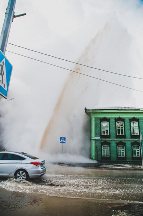 Сегодня в центре Тюмени на перекрестке улиц Хохрякова и Дзержинского произошел порыв трубопровода горячего водоснабжения. По словам очевидцев, столб горячей воды бил в небо на высоту девяти этажей. О коммунальной аварии в МЧС сообщил очевидец.
