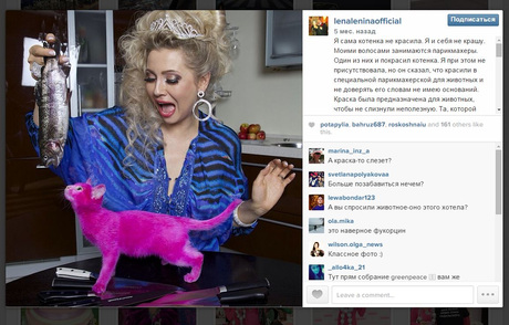 Журналистку и писательницу Лену Ленину требуют привлечь к уголовной ответственности за жестокое обращение с животными. По информации активистов, котенок, который для вечеринки дивы был перекрашен в розовый цвет, погиб от интоксикации. Петиция с обвинениями в адрес Лениной размещена на портале change.org.