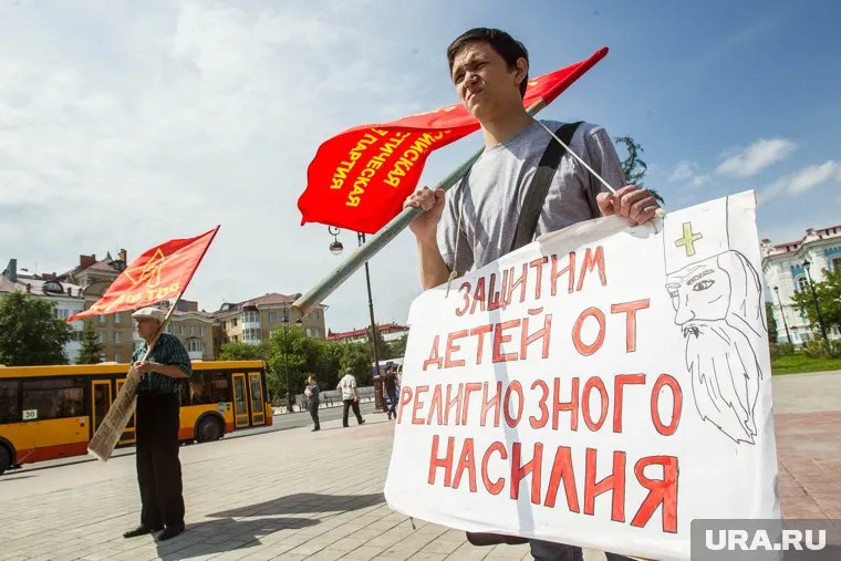В Тюмени прошел антиклерикальный митинг. Сегодня активисты из «Союза воинствующих безбожников» и РКРП провели акцию протеста с целью привлечь внимание общественности к проблемам взаимодействия религии, общества и государства.