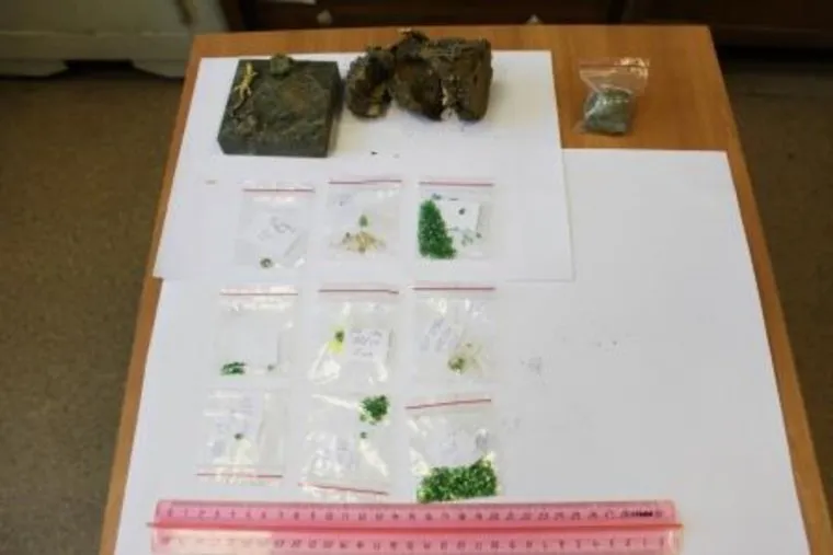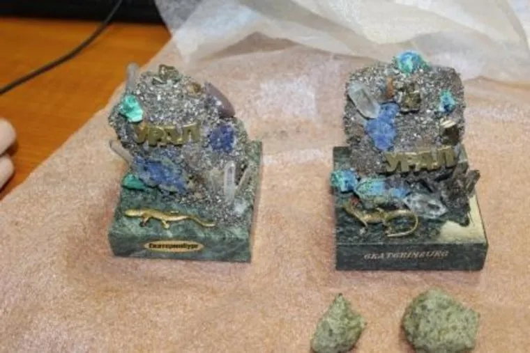 «В ходе проведенных совместных оперативно-розыскных мероприятий было установлено, что жители г. Екатеринбурга — отец и сын, с целью личного обогащения заранее разработали схему контрабандного вывоза из России уральских самоцветов демантоидов, — сообщает пресс-служба Дальневосточного таможенного управления. — Так, скупленные на территории Свердловской и Челябинской областей ценности из Екатеринбурга во Владивосток переправлялись экспресс-почтой на подставных лиц. В целях сокрытия от таможенного контроля подготовленных к вывозу демантоидов участники группы изготовили специальные тайники в виде каменных сувенирных изделий, во внутренние полости которых вложили полудрагоценные камни».