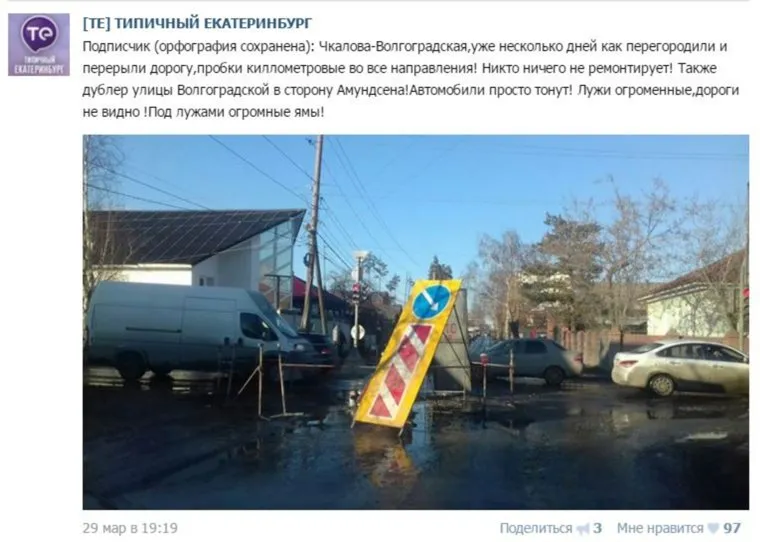«Ямы оттаяли, теперь все машины крадутся — не знаешь ведь, что ждет тебя под лужей. Просто общая скорость движения снизилась, где-то и вовсе до пяти километров в час», — подтвердили «URA.Ru» несколько водителей такси. В частности они упоминули «колдобины» на «Калине», на «Южной», на Волгоградской, на Косманавтов и на других крупных дорогах города.