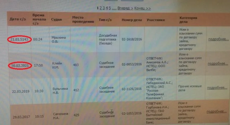 Электронная картотека в московских судах дает сбой. В базе данных появились сведения о процессах, которые назначены на 3021 год или 5143 год.