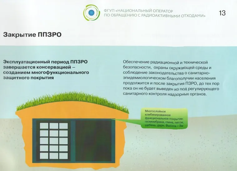 «Данная конструкция способна без повреждений выдерживать землетрясения мощностью до 6 баллов (по оценкам специалистов, на Среднем Урале максимальная мощность возможного землетрясения не превышает этого показателя), — поясняет Александров. — Во время работы и после консервации объекта будет вестись мониторинг его влияния на окружающую среду: будут проверяться атмосферный воздух, выпадение снега, почва, растительность, мощность дозы на периметре, вода в нагорных канавах, а также подземные источники — с помощью наблюдательных скважин».