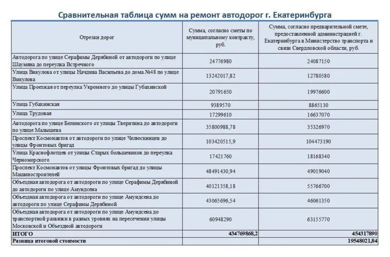 20 млн уйдут в карманы? Мэрия Екатеринбурга решила обогатиться на ремонте дорог. ТАБЛИЦА