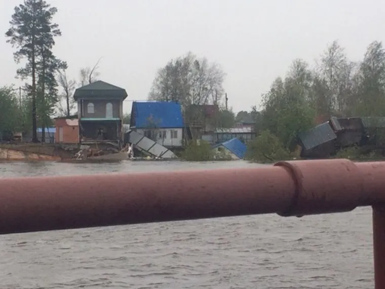 В Югре дома сползают в реку. В ГО и ЧС не слышали о чрезвычайной ситуации. ФОТО