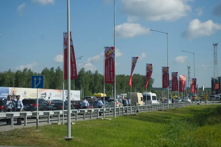 Перед въездом на территорию «Екатеринбург-ЭКСПО» огромная пробка с самого утра