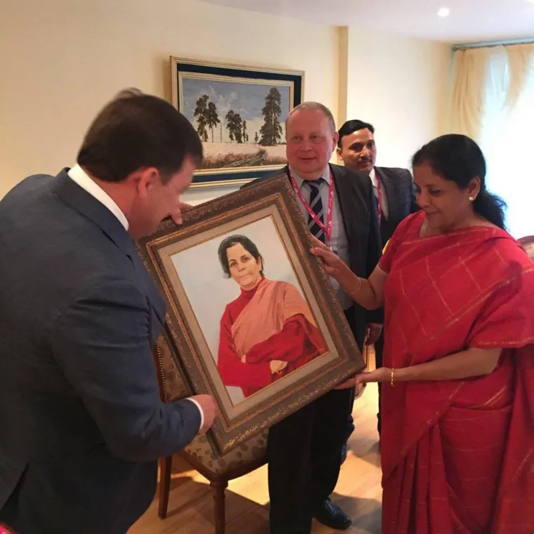 10:30 Накануне губернатор Евгений Куйвашев вручил государственному министру промышленности и торговли Индии Нирмале Ситхараман ее портрет. Гостье такой подарок пришелся по душе, утверждают свидетели церемонии вручения.