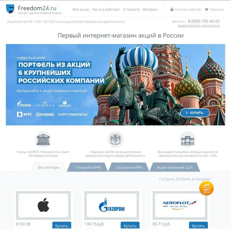 Первый в России сервис для покупки ценных бумаг — Freedom24.ru — работает более трех лет и помогает начинающим инвесторам быстро и просто купить настоящие акции через Интернет. Акции ставятся на счет инвестора в полном соответствии с законом ЦБ о рынке ценных бумаг и хранятся в НРД (Национальном расчетном депозитарии), а их владельцы являются полноценными акционерами — они участвуют в собраниях акционеров, получают дивиденды и владеют частью настоящего бизнеса.