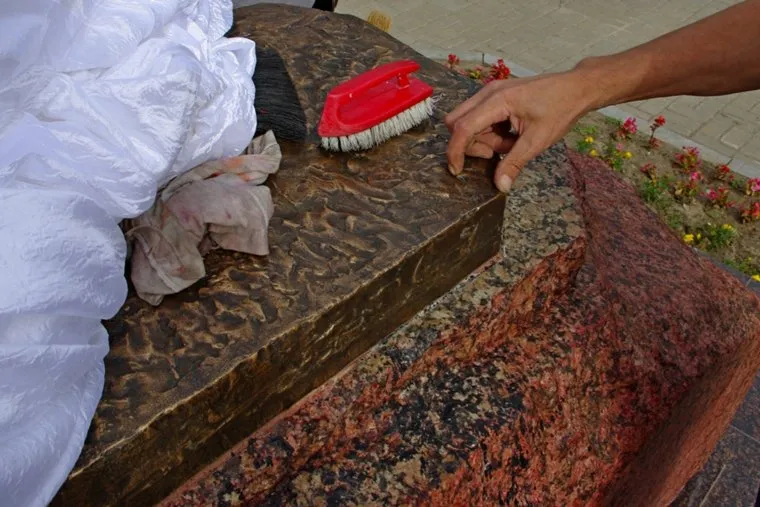 Памятник чистили вручную при помощи щеток, скребков и скипидара