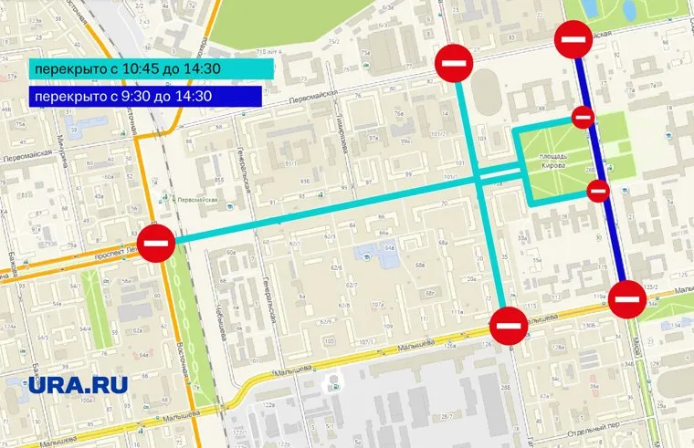 Изменения коснутся и работы общественного транспорта. Троллейбусы перестанут ходить по Малышева (от Центральной гостиницы до Мира и Первомайской ). Трамваи — по Ленина (от Гагарина до Луначарского ) и по улицам Гагарина и Малышева — (от Блюхера до 40 лет ВЛКСМ ). Автобусы — по Мира (от Малышева до Первомайской) , по Ленина (от Восточной до Мира ) и по Гагарина (от Малышева до Первомайской) .