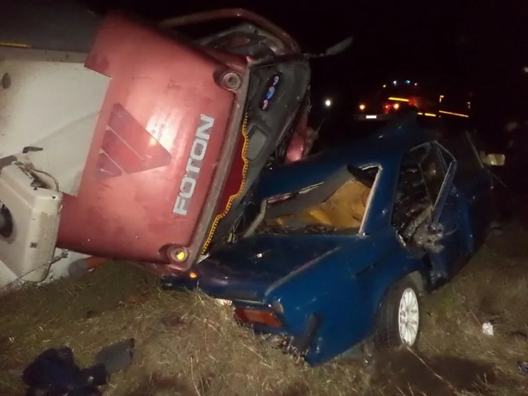 По предварительным данным, водитель грузовика «Фотон» выехал на полосу встречного движения и столкнулся с автомобилем ВАЗ-2106. Водитель «шестерки» и трое его пассажиров погибли на месте.