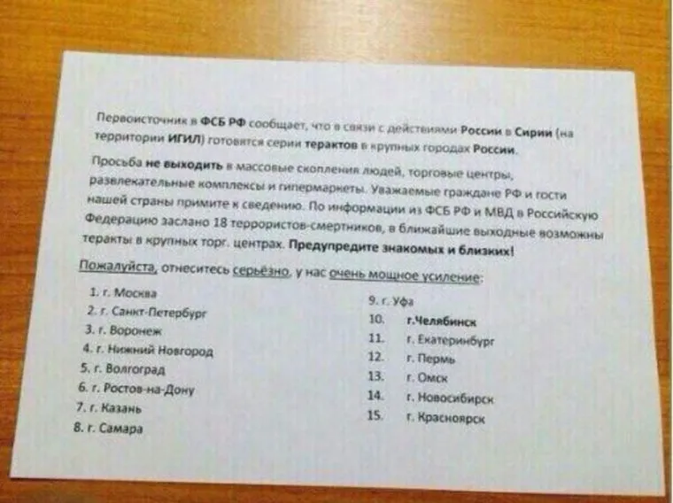 Помимо пугающих сообщений, беспокойства уральцам добавила и информация о так называемом «дне гнева». Как сообщает официальный сайт МИД, исламские радикальные группировки по всему миру объявили призыв к проведению «дня гнева и протеста». Причиной стало возобновление боевых действий в сирийском Алеппо. МИД рекомендует всем россиянам быть осторожнее в поездках за рубежом. Власти Москвы накануне проверили безопасность метрополитена и его готовность к эвакуации.
