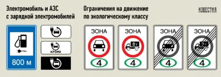 Кроме того, ряд новых дорожных знаков будет ограничивать движение транспорта в зависимости от экологического класса используемого топлива.