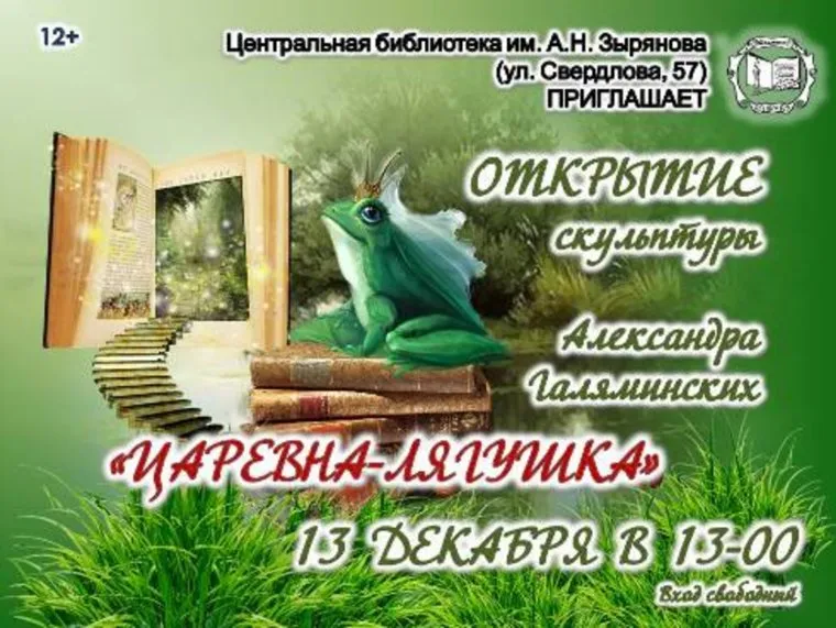 В Шадринской центральной библиотеке им. Зырянова во вторник, 13 декабря, состоится открытие скульптуры местного художника Александра Галяминских «Царевна-лягушка». Шадринск считают родиной этого сказочного персонажа.