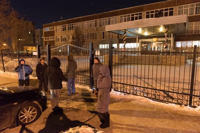 Администрация гимназии №70 с углубленным изучением английского языка с пониманием отнеслась к желанию родителей дежурить возле школы. Чтобы люди не мерзли, их пустили в теплый холл.