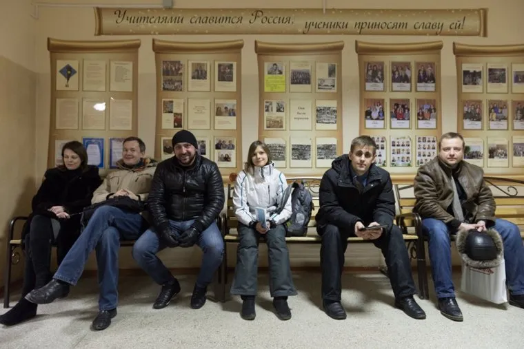 Родители дежурили перед школой всю ночь, но, несмотря на холод и бессонные часы, атмосфера здесь дружеская. Люди подбадривают друг друга и шутят: «До утра с вами не расстанемся. А может быть, и до десятого класса»