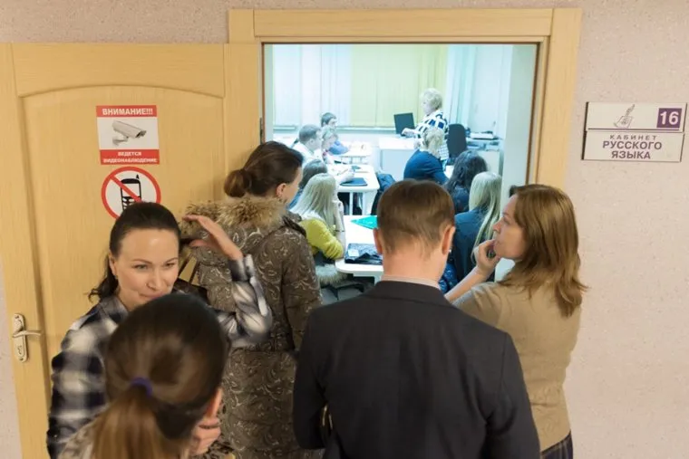 Периодически к родителям выходит директор гимназии Татьяна Субботина. По ее словам, сейчас в школе на приеме документов от родителей работают семь операторов. Они сразу сверяют данные в бумажных документах со сведениями, указанными на сайте госуслуг. В классе, где принимают заявления, сейчас находятся 30 человек, остальным приходится ждать на лестнице.