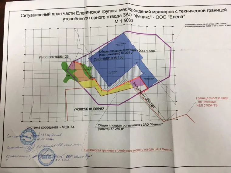 На совещании по комплексному освоению Еленинской группы месторождений, проведенном 15 февраля министром Алексеем Бобраковым, присутствовали представители компаний ООО «ГК «МраморЭкс», ООО «Елена» и ЗАО «Феникс». Для урегулирования споров, связанных с границами горных отводов, была обозначена новая технологическая граница для одного из лицензионных участков. В соответствии с ней ООО «Елена» должно провести переоценку запасов и отказаться от участка, расположенного южнее «новой» границы. Представители всех компаний согласились с данным предложением, что зафиксировано в протоколе совещания. На данный момент ООО «Елена» уже приступило к исполнению взятых на себя обязательств, сообщили в министерстве.
