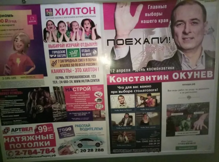 Лидер общественного движения «Выбор» Константин Окунев, который заявил о готовности участвовать в выборах губернатора, уже активно себя рекламирует. Как стало известно «URA.RU», в Перми размещено уже почти пять тысяч его портретов.
