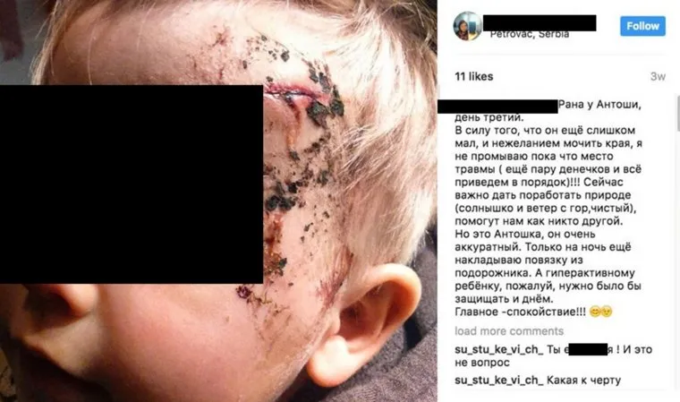 Поверх перца Наталья наложила измельченный лист подорожника, при этом не промывая рану. Через три дня мать ребенка выложила его фото, хвастаясь тем, как хорошо зарастает рана. Женщина добавила, что теперь малышу нужна энергия солнца и горный воздух. Вместе с сыновьями женщина живет в одной из сербских деревень. Многие пользователи соцсетей негативно отнеслись к методам лечения Натальи.