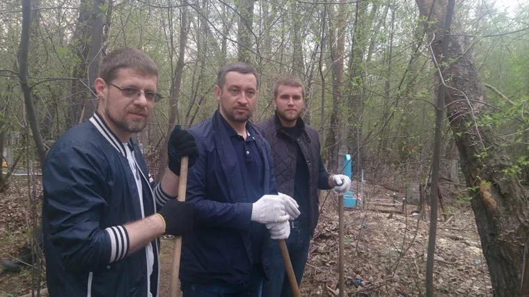 «Фактически тут покоится коллега сегодняшних депутатов гордумы. Его надгробие развалилось пополам. Верхняя часть упала и вросла в землю. Мы ее подняли и водрузили наверх. Было непросто. Мне кажется, эта верхушка килограммов пятьсот весит», — признался помощник Вихарева Михаил Плешаков.