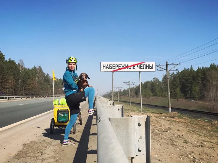 Путешествие на велосипеде стартовало 1 мая под девизом «А чего дома сидеть?». За 11 дней девушка смогла осилить 553 км, добравшись до Перми. Вместе с путешественницей едет ее 13-летняя такса, которая страдает от прогрессирующего онкологического заболевания.