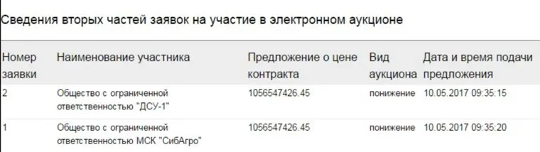 Заявки от компаний поданы с разницей в 5 секунд