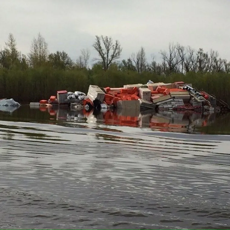 В Тюменской области возле села Ярково затонула 800-тонная баржа со строительными материалами, которые предназначались для ямальцев. В кораблекрушении винят недальновидность капитана судна.